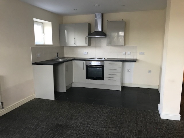 This stylish 1 bedroom apartment is light, spacious and consists of a large lounge area with a modern open plan fitted kitchen. The kitchen is fitted with electric oven and hob with ample cupboard space. Space is there for installation of washing machine and fridge/freezer. The property has 1 large double bedroom along with a spacious fully tiled bathroom including a bath with a shower.